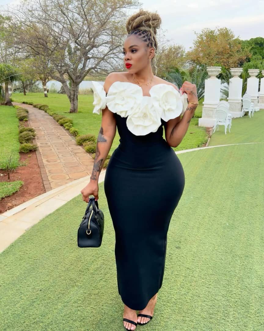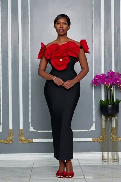 • Style: Off-the-shoulder, body-hugging bandage dress, typically featuring a stretch-knit fabric designed to contour the body.