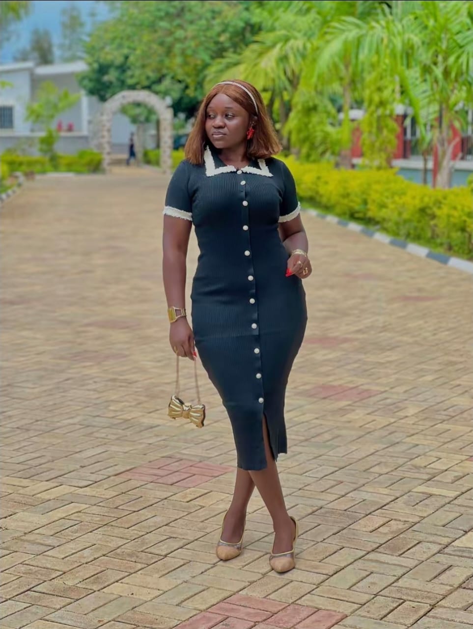 Button-down bodycon midi dress(5105)