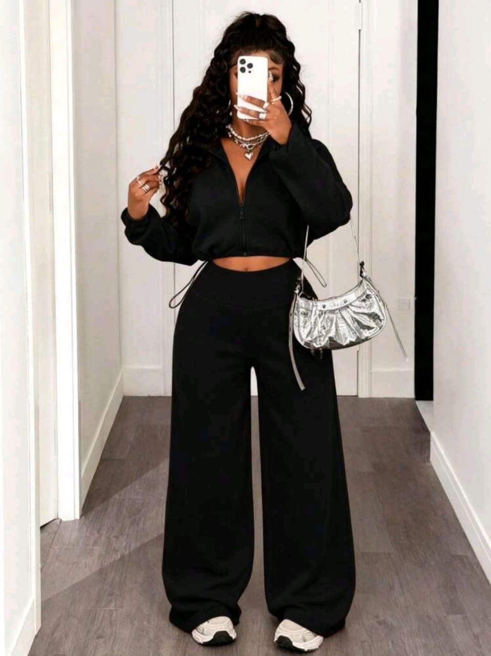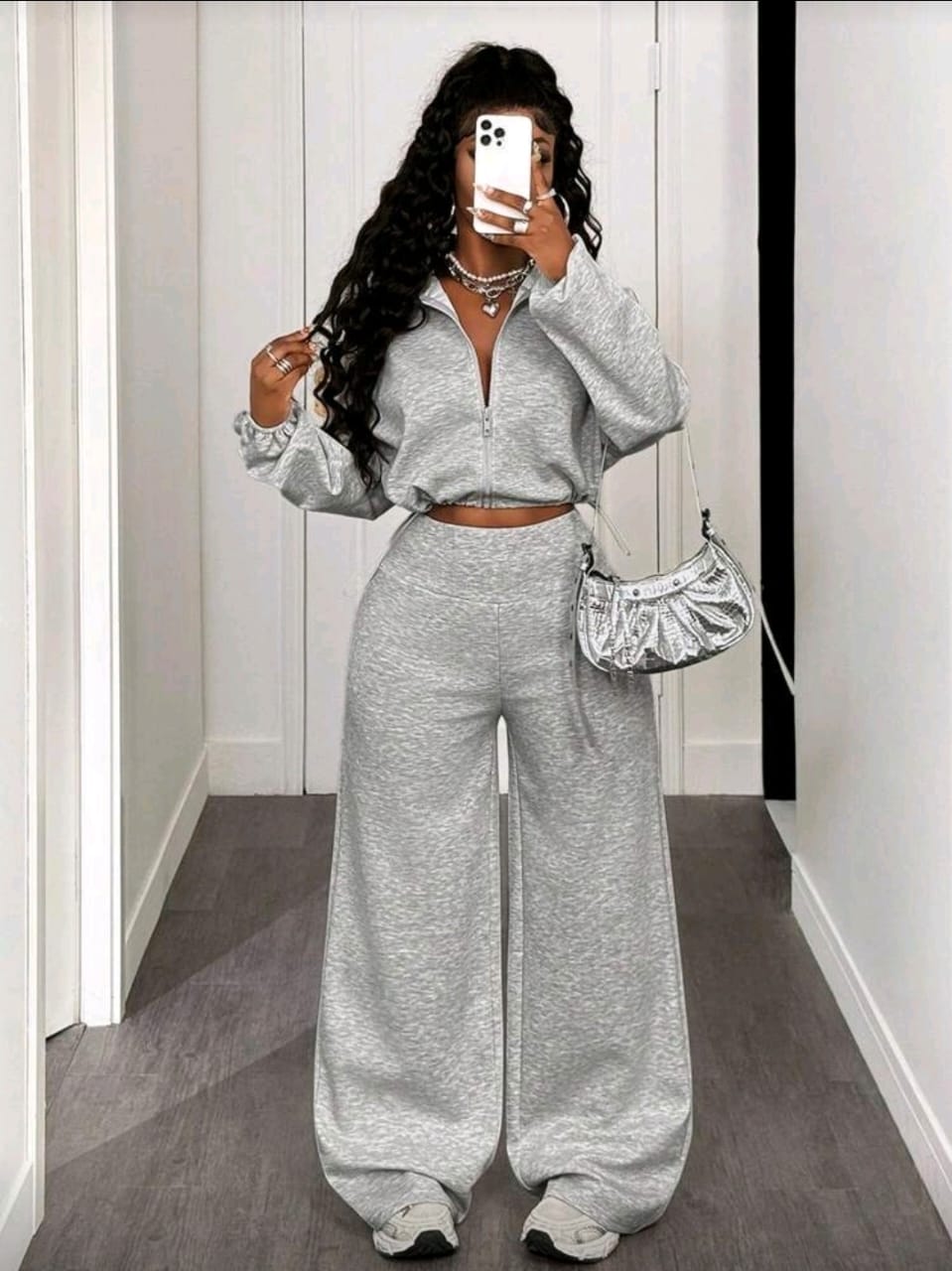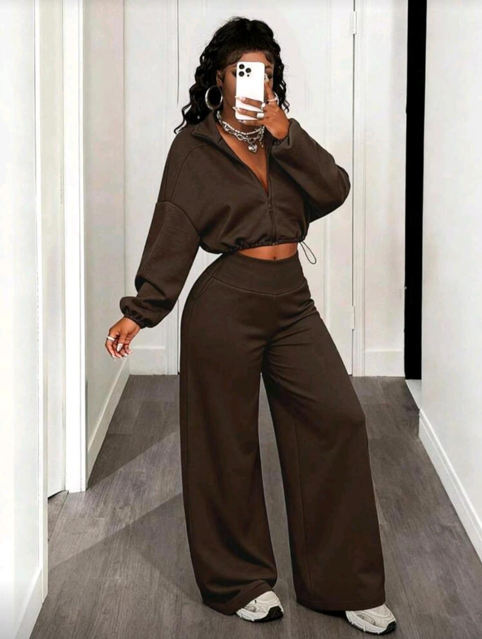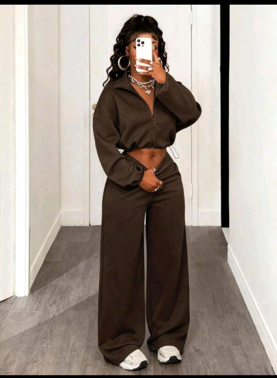 Cropped Zip-Up Hoodie And Wide-Leg Pants (4976)
