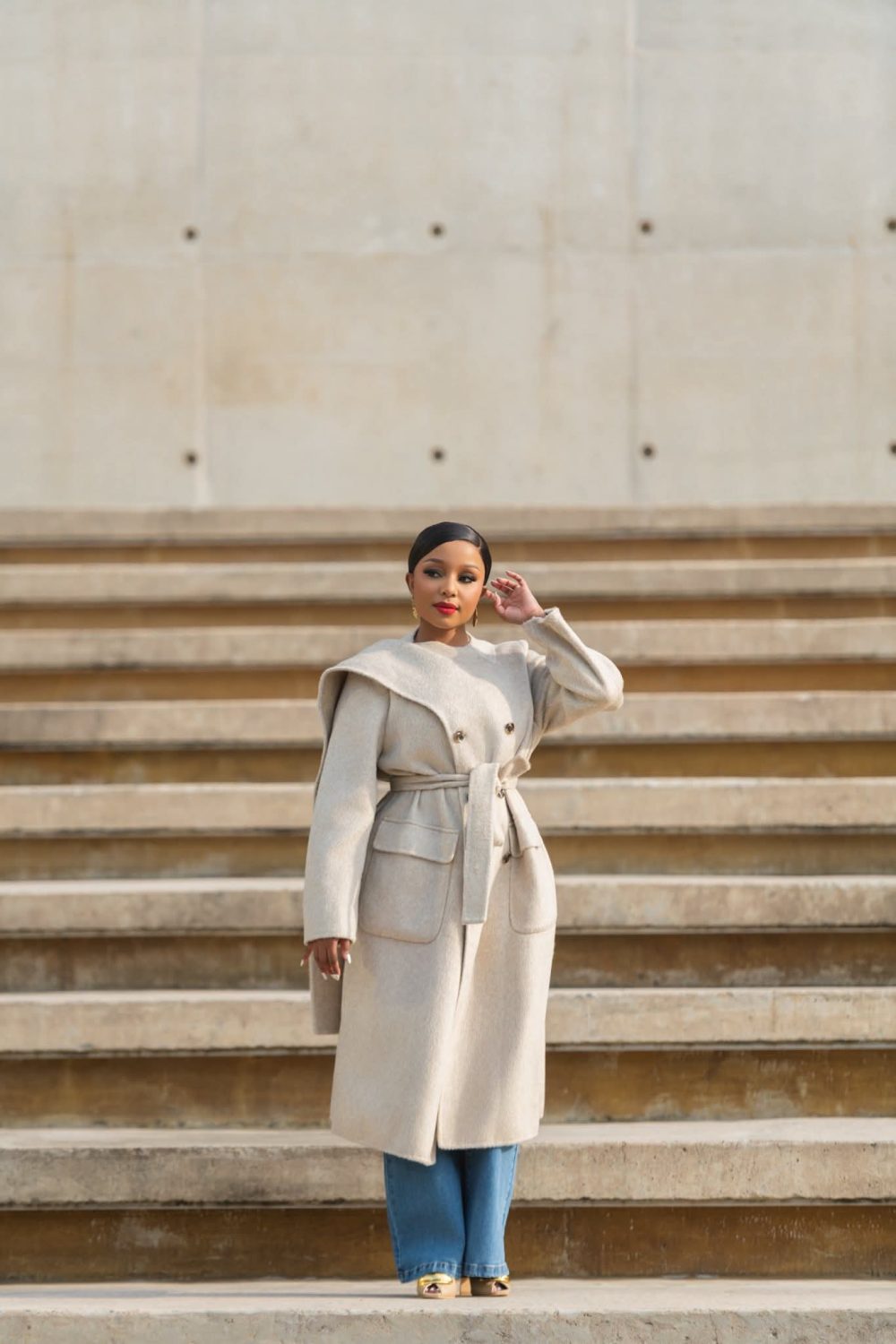Double-Breasted Scarf-Detail Overcoat(B32004)