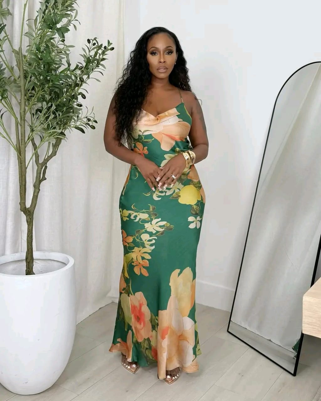 Floral satin slip maxi dress(21699) Floral satin slip maxi dress(21699)