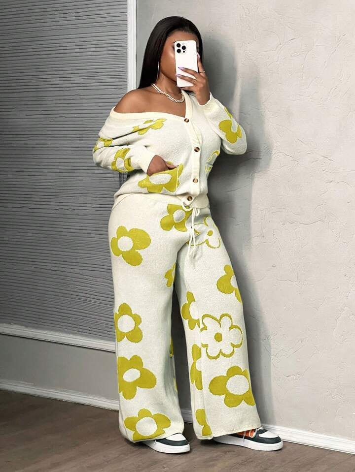Learn More →Experience effortless style with this soft knitted two-piece set. The relaxed-fit cardigan features a V-neckline and button-front closure, paired with wide-leg trousers for a comfortable and chic look. Perfect for casual wear, this set is ideal for cooler weather and everyday elegance.