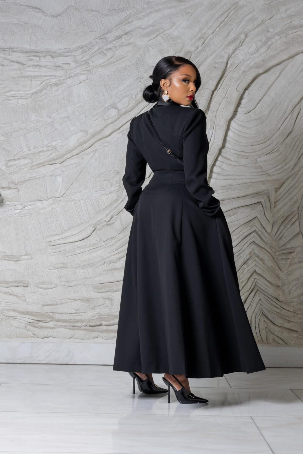 Long double-breasted tuxedo blazer dress(20436)