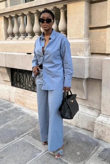 Elevate your wardrobe with this stylish matching set! Featuring an oversized button-down shirt and wide-leg pants, this two-piece is perfect for a chic and comfortable look.