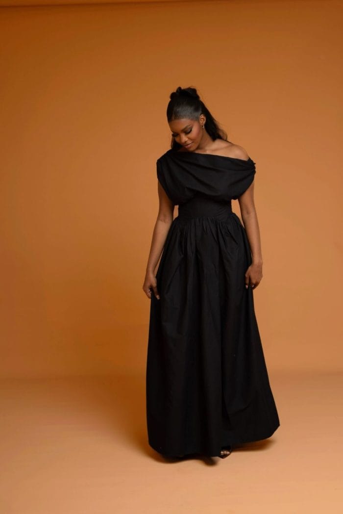 Step into the spotlight with this elegant black off-the-shoulder. Crafted from a high-quality, structured fabric, this dress features a chic off-the-shoulder neckline with a beautifully draped or pleated detail that frames the décolletage. The fitted, cinched bodice flows into a full, A-line skirt with dramatic pleats, creating a timeless ball gown silhouette. This piece combines classic design with a modern flair, making it an ideal choice for black-tie events, galas, proms, or special evening affairs. The gown is available for order with some sellers offering custom sizing for the perfect fit.