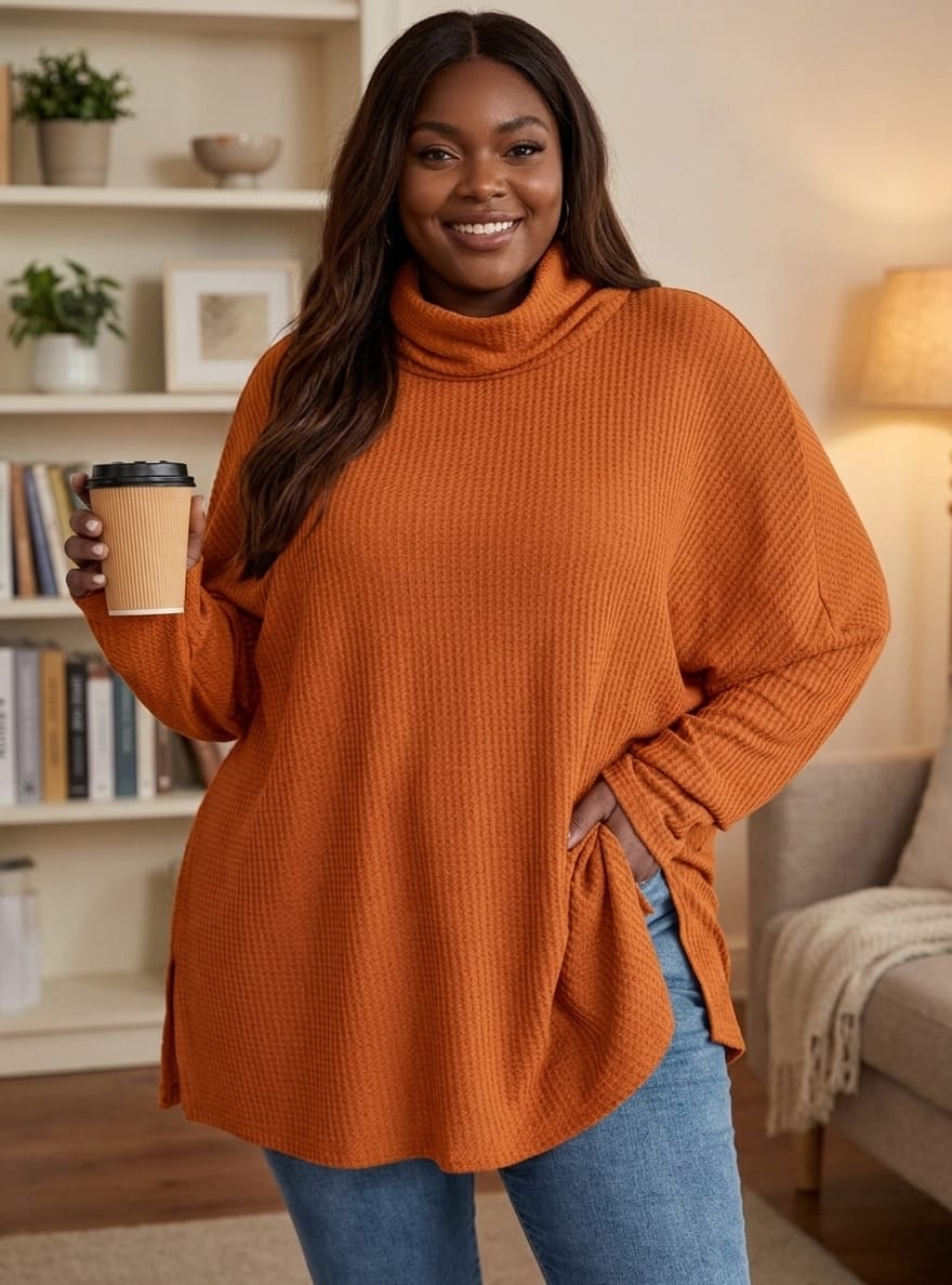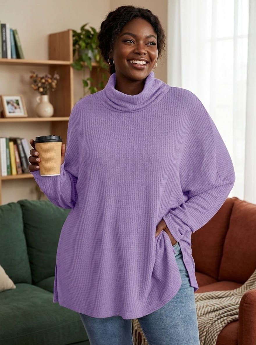 Oversized waffle-knit cowl neck sweater (13213) Oversized waffle-knit cowl neck sweater (13213)