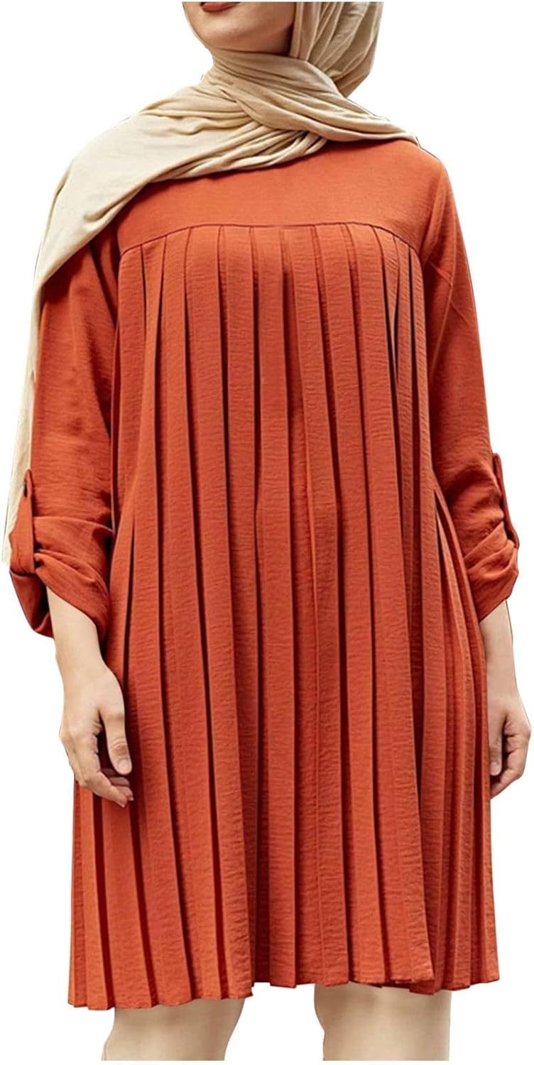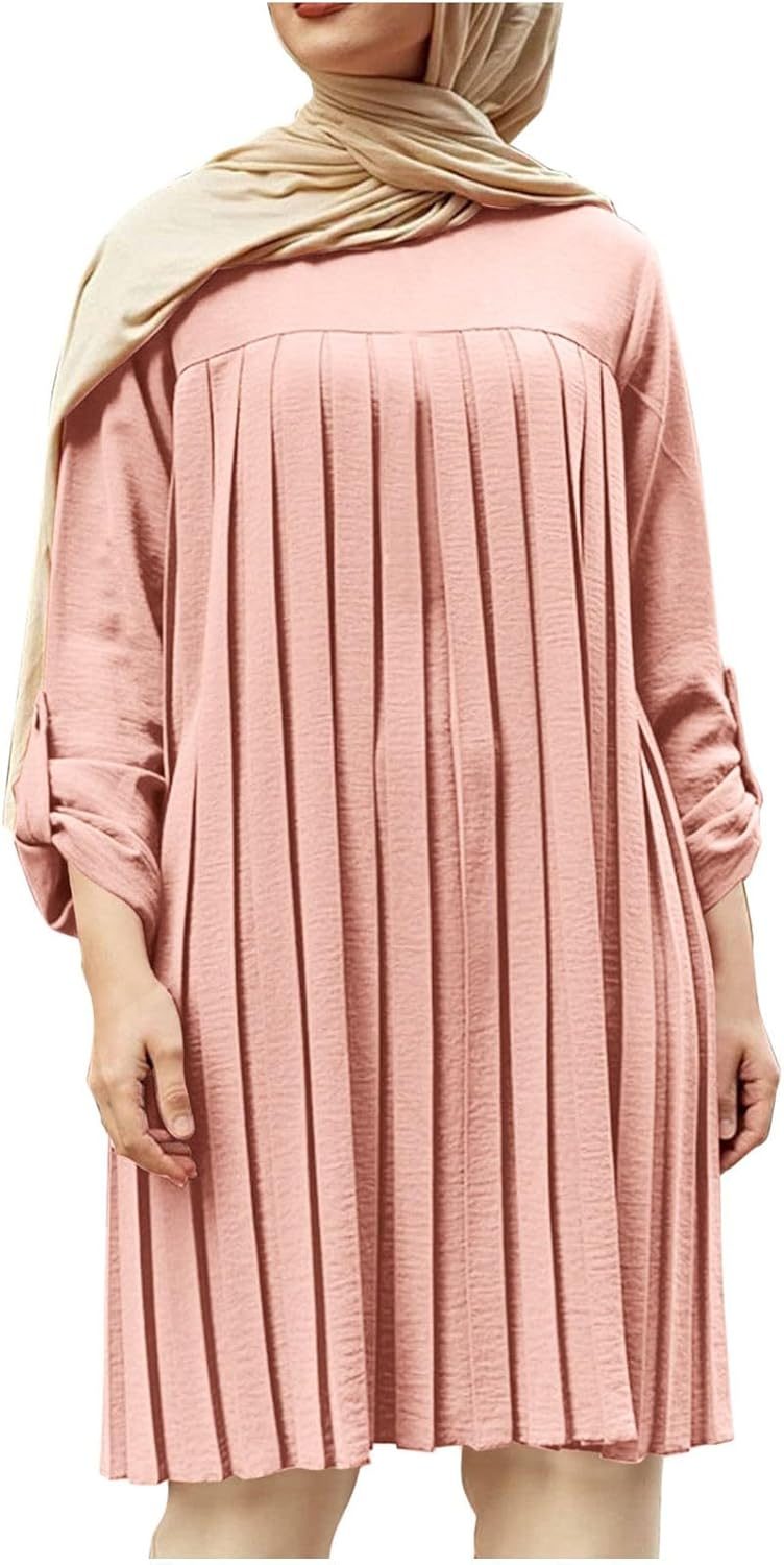Pleated Tunic Long Sleeve Dress (2605)