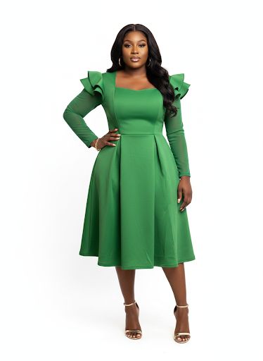 Ruffle-sleeve plus-size A-line cocktail dress (18484)