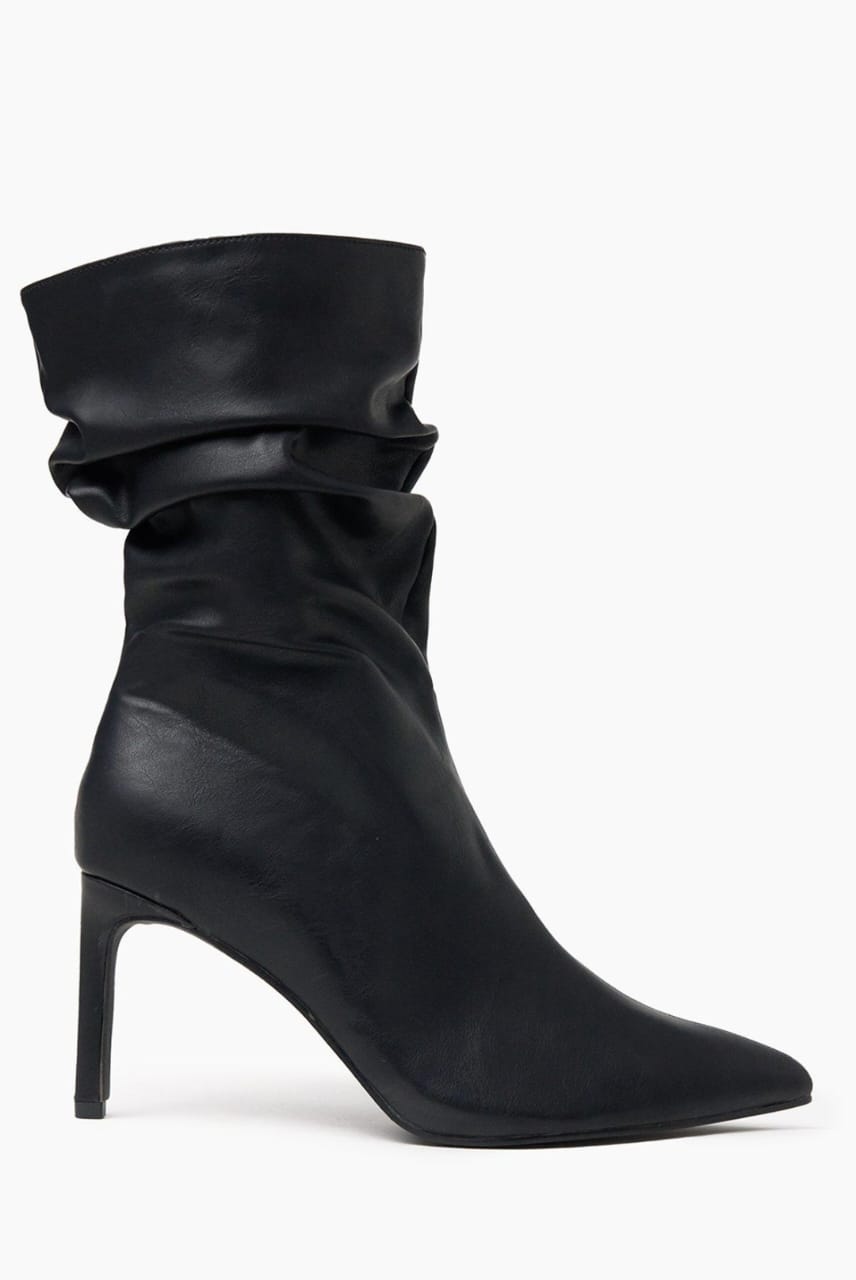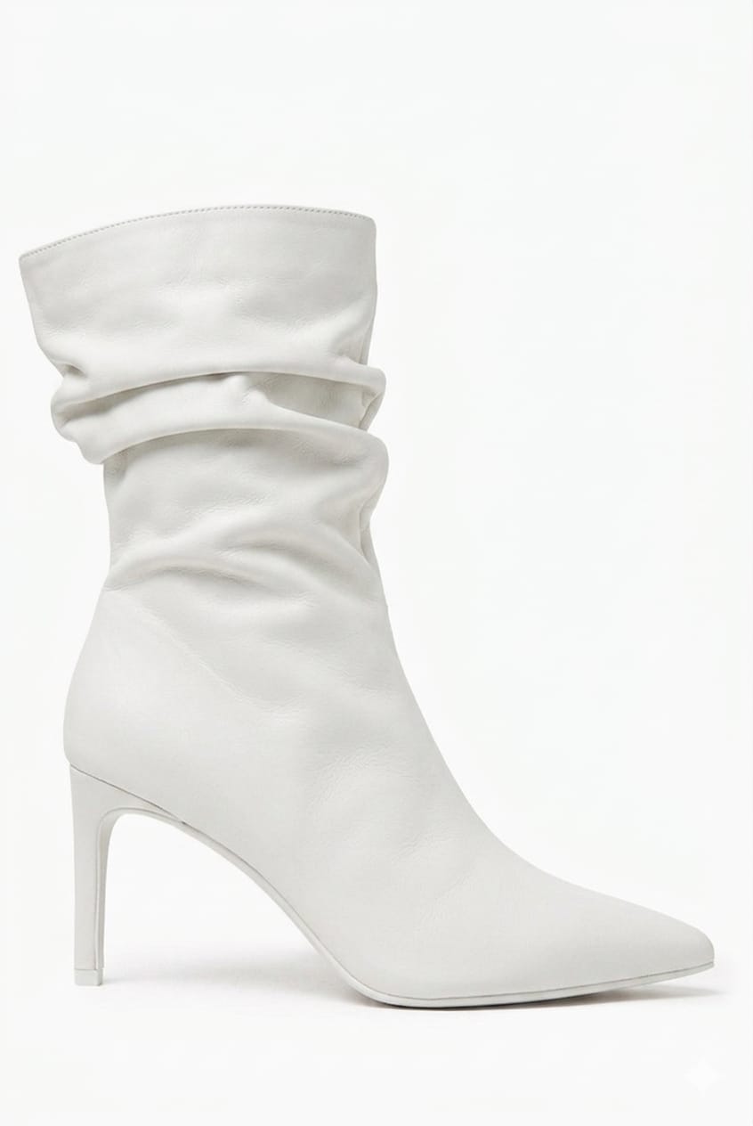 • Design: Features a “slouchy” or ruched shaft that creates a soft, rippled texture around the ankle.