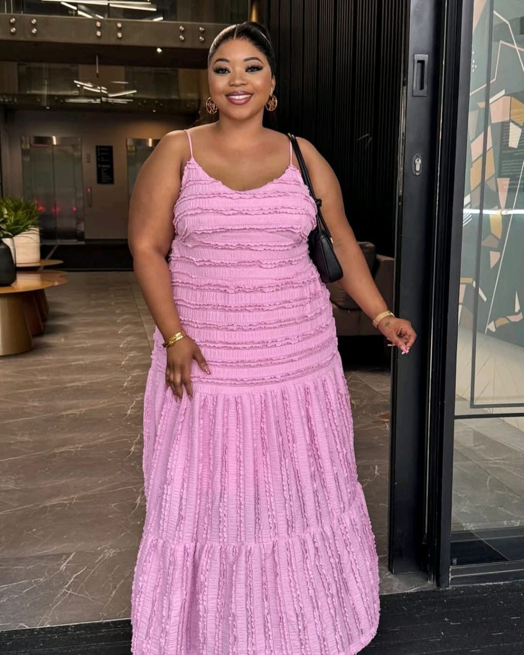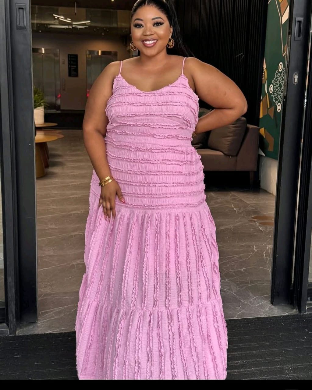 Step into effortless summer style with this beautiful tiered maxi dress. The dress features a textured, crinkle-fabric bodice with a delicate ruched design for a comfortable, flattering fit. Thin spaghetti straps provide a classic, airy feel, while the flowing, tiered skirt adds a touch of bohemian elegance and movement. Made from a lightweight, breathable fabric, this dress is perfect for warm weather, whether you’re heading to a casual brunch, a beach day, or a garden party. This versatile piece pairs perfectly with sandals and a sunhat for a relaxed daytime look, or can be dressed up with heels and accessories for an evening out