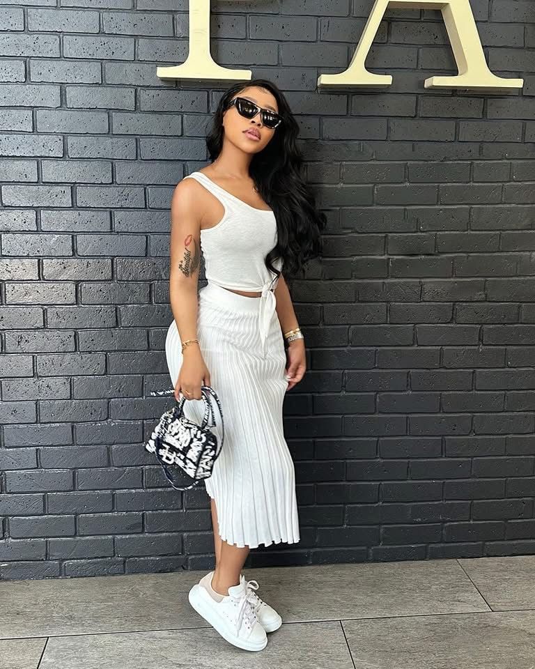 • Styling: This versatile “co-ord” set is often paired with fresh white sneakers and oversized sunglasses for a chic, athletic-inspired aesthetic.