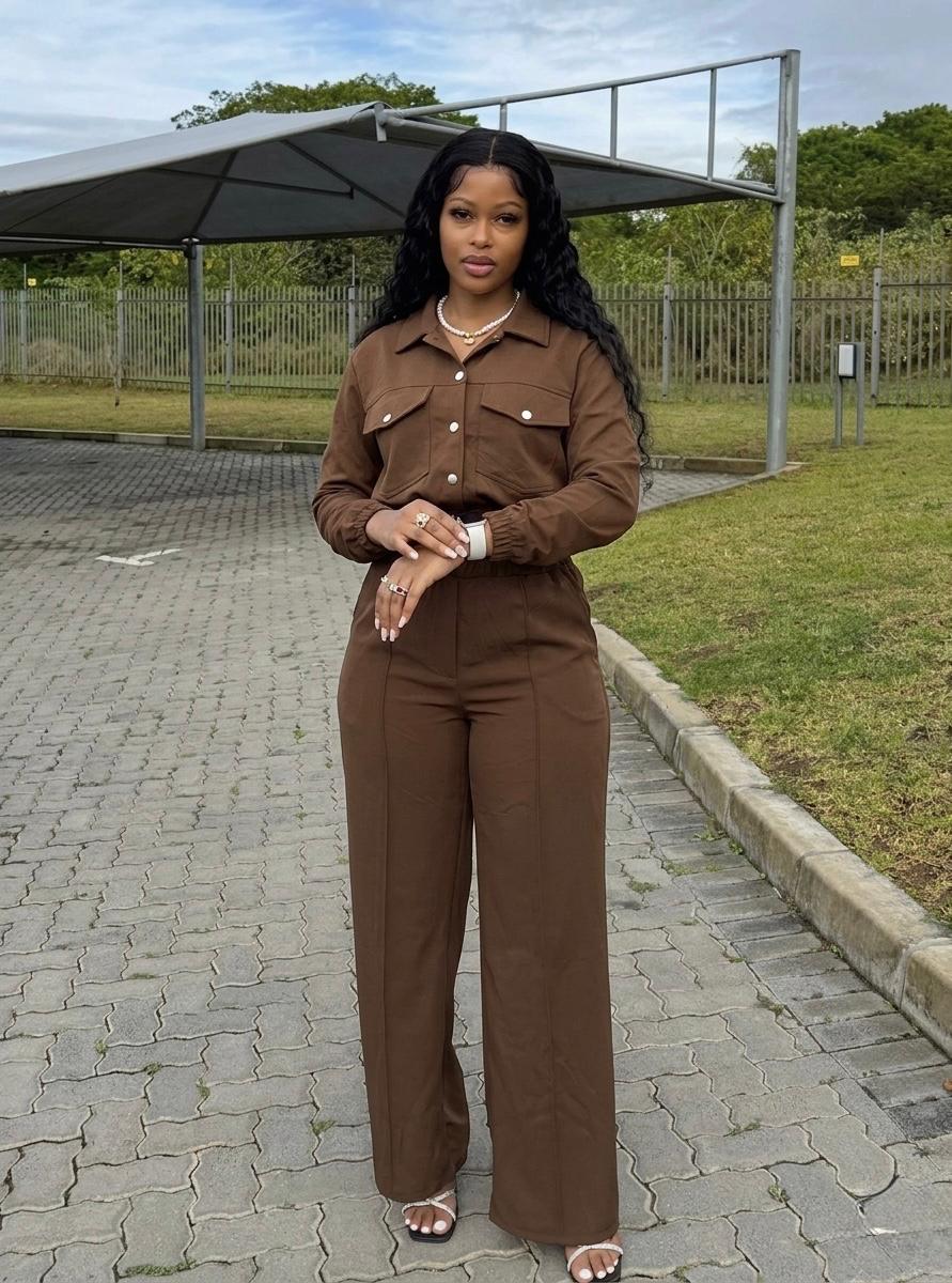 • Design: The shirt has a cropped fit and is detailed with two large functional chest pockets with buttoned flaps, giving it a modern utility or military-inspired feel.