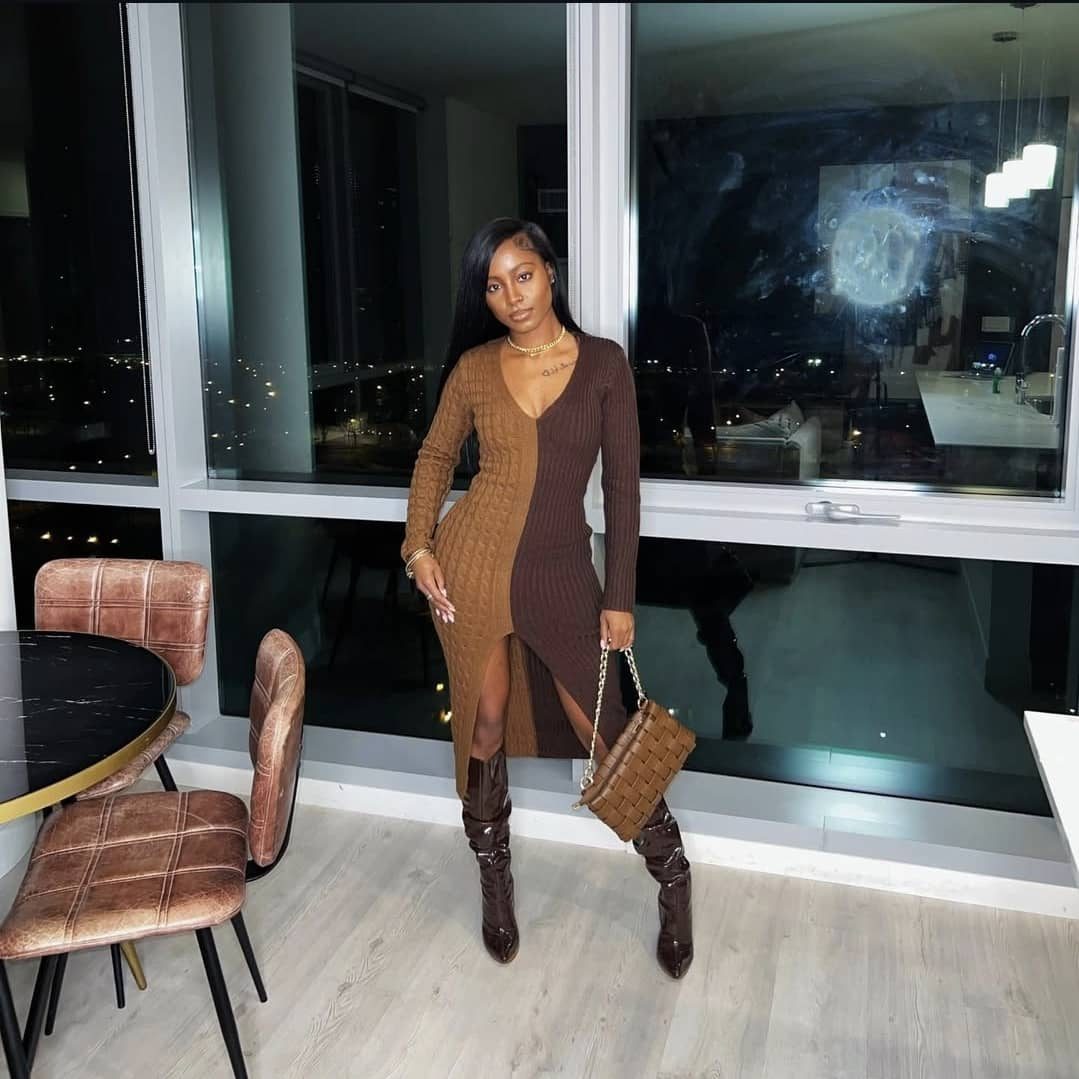 Elevate your wardrobe with our sophisticated V-Neck and Long Sleeves Dress, perfect for work, formal events, or special occasions.