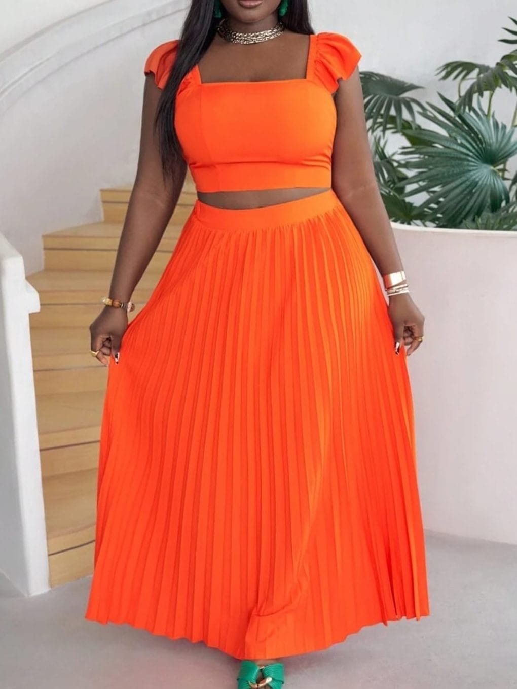 Flounce Sleeveless Top With Pleated Hem 2 Peace (4945)